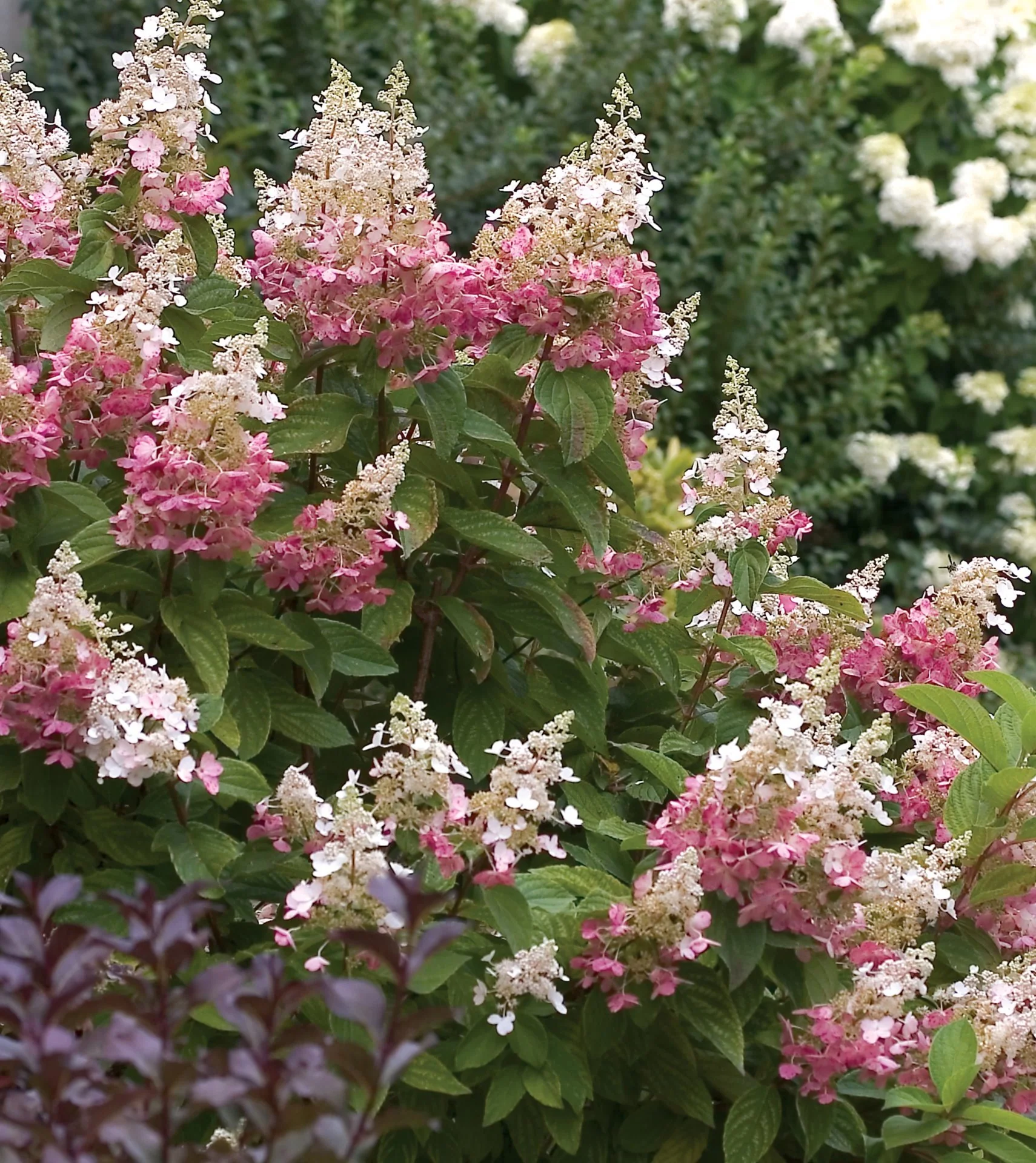 Elegant panicle hydrangea with white blooms that turn deep pink in fall. Upright habit and strong stems provide classic garden appeal.